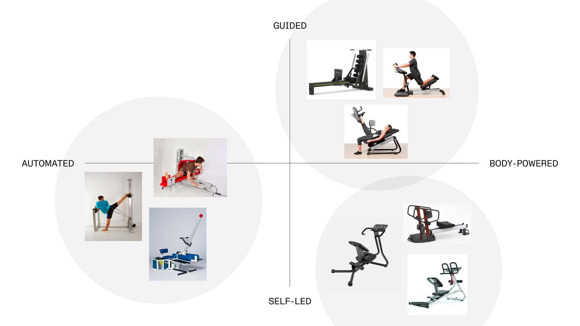 The device considers all zones of current assistive stretching technology, opting for a solution that tends toward a user-controlled, yet guided process.